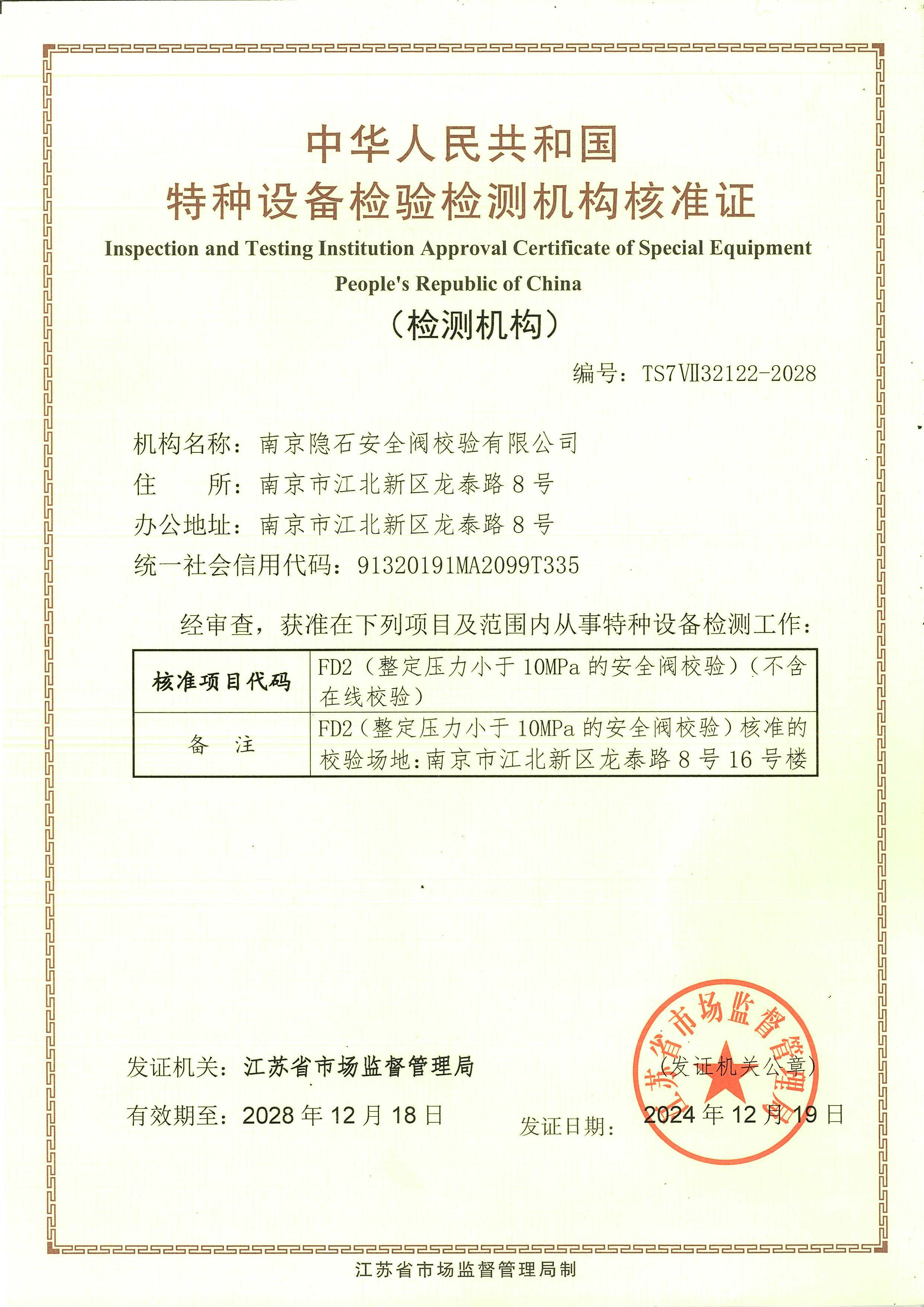 具有CMA和CNAS資質(zhì),特種設(shè)備檢 驗(yàn)檢測(cè)核準(zhǔn)證書