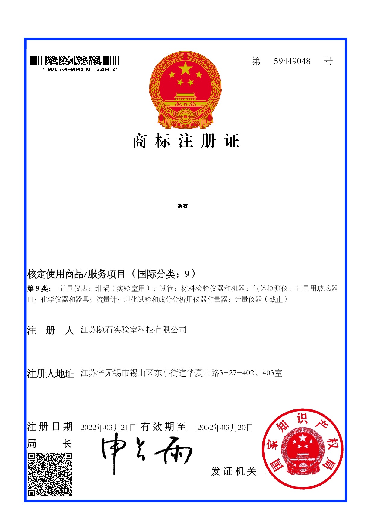 近日江蘇隱石實驗室科技有限公司申請注冊“隱石”等商標(biāo),獲得國家知識產(chǎn)權(quán)局核準(zhǔn)注冊成功,此次申請的商標(biāo)包含第九類:計量儀表;坩堝(實驗室用);試管;材料檢驗儀器和機器;計量儀器;氣體檢測儀;計量用玻璃器皿;化學(xué)儀器和器具;流量計;理化試驗和成分分析用儀器和量器,第四十二類:產(chǎn)品質(zhì)量檢測服務(wù);技術(shù)研究咨詢;技術(shù)研究;機械研究;質(zhì)量控制;科學(xué)實驗室服務(wù);科學(xué)研究;工程設(shè)計服務(wù);產(chǎn)品質(zhì)量評估;產(chǎn)品質(zhì)量檢測;技術(shù)開發(fā)領(lǐng)域的咨詢服務(wù);機械制造的研究;產(chǎn)品安全檢測服務(wù);進行化學(xué)分析;化學(xué)分析服務(wù);化學(xué)研究和分析;化學(xué)服務(wù);化學(xué)研究;化學(xué)分析;產(chǎn)品測試;原材料測試;材料檢測咨詢;材料檢測;材料測試。